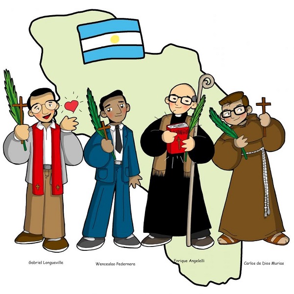 Ciudad del Vaticano (AICA): El papa Francisco recordó esta mañana a los cuatro mártires riojanos, beatificados ayer en La Rioja. “Estos mártires de la fe fueron perseguidos por la justicia y la caridad evangélica. Que su ejemplo y su intercesión apoyen en particular a los que trabajan por una sociedad más justa y unida¨., dijo Francisco.