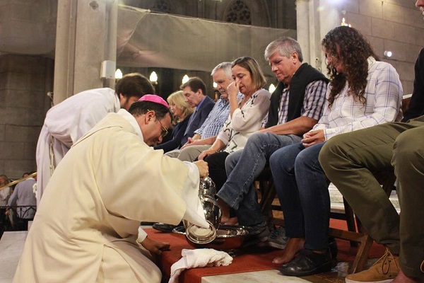 Este jueves Santo por la noche, como es tradicional, el obispo de Mar del Plata presidió la misa de la Cena del Señor, en la Iglesia Catedral. Durante la misma lavó los pies a cinco parejas de matrimonios y una de novios. Finalizada la eucaristía comenzó, con la adoración al Santísimo, la "Hora Santa".